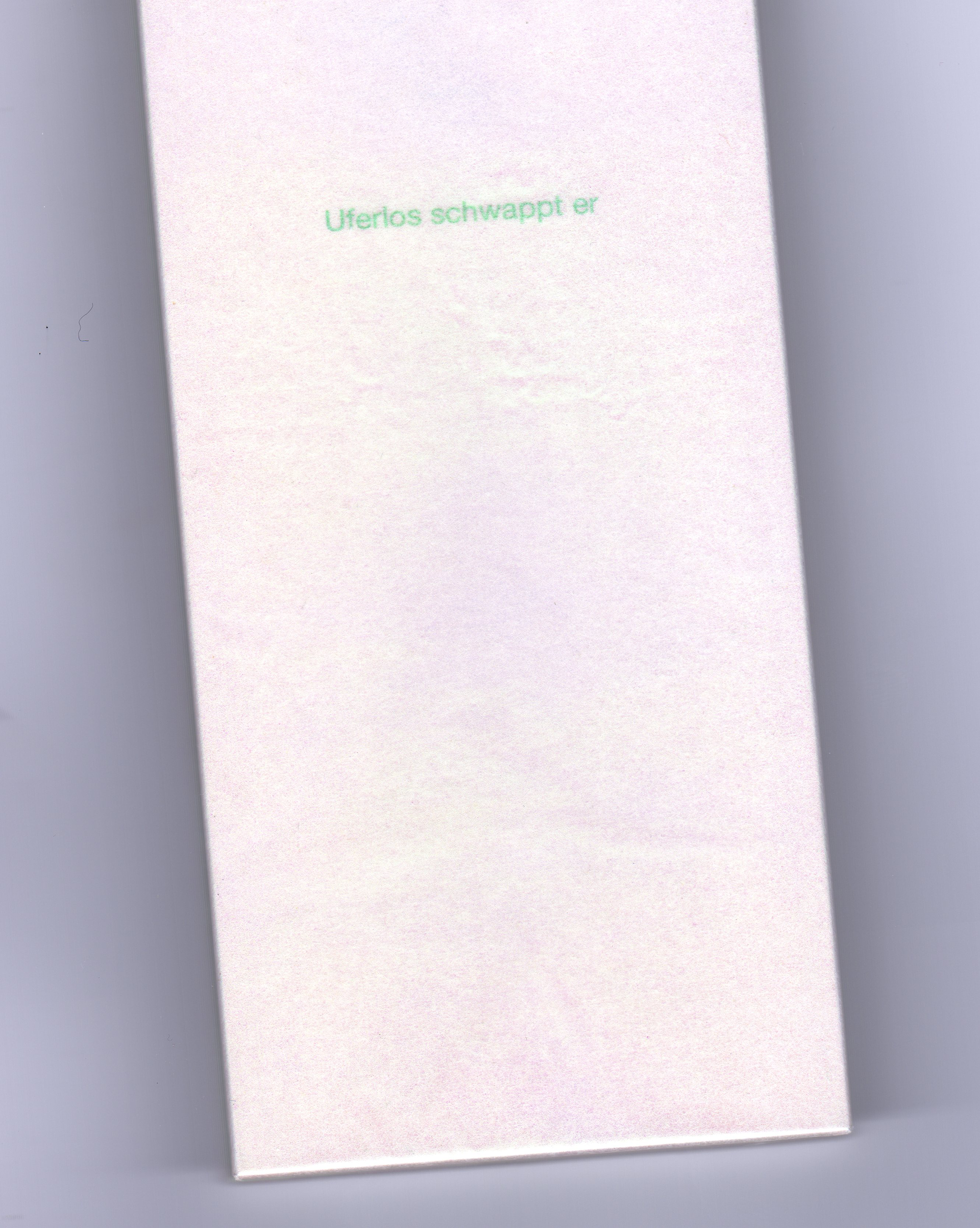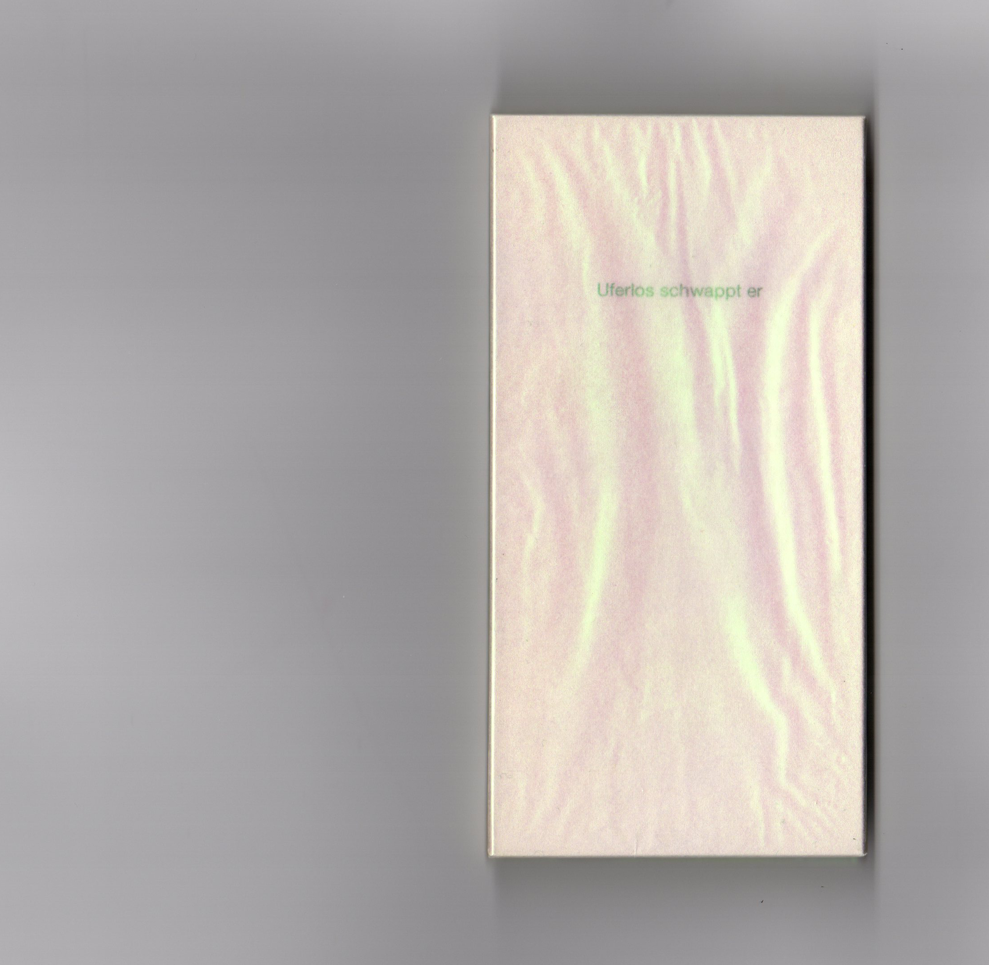 The small greenish pink shimmering book in the size of a smartphone and just as heavy contains 16 poems. The short, fragmentary texts reflect the confrontation with digitality and digital devices. Bodily language that expresses being a body, the longing for other bodies instead of always the same smooth screens. The design of the book itself plays with the attractiveness of devices from market-leading tech producers: it is sexy, pleasantly heavy in the hand, silky smooth, and in order to be able to read the title clearly, you have to zoom in.